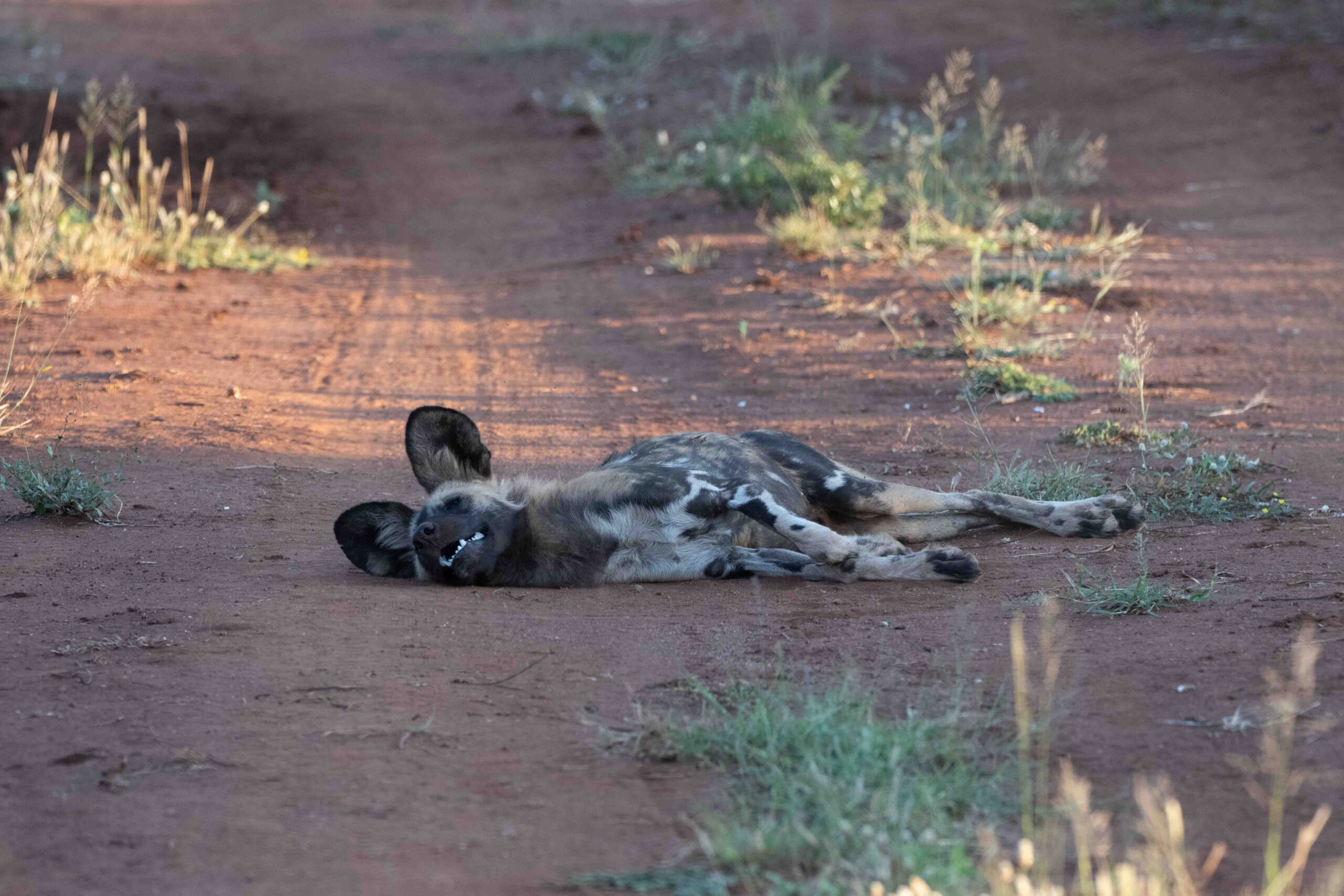 We didn’t have great animal viewing, thus the heavy bird content. On the second last day we came across a pack of African Wild Dogs, and they certainly didn’t disappoint. Initially they were all sleeping under a huge bush, and we only caught glimpses of them as they shifted position. We waited for about 2 hours, but our patience paid off. Suddenly the whole pride was up and greeting each other with wild yips and barks.