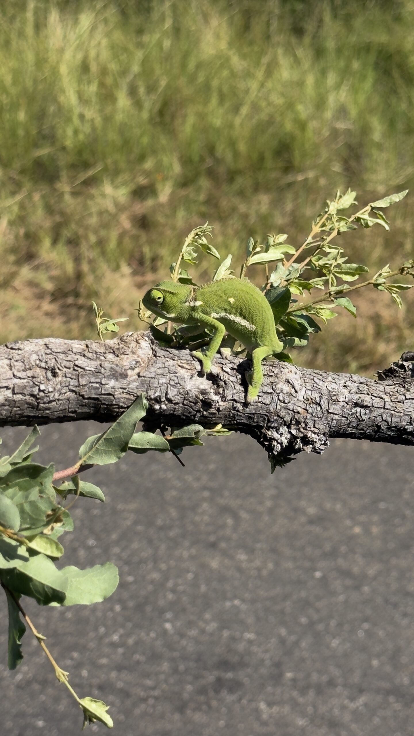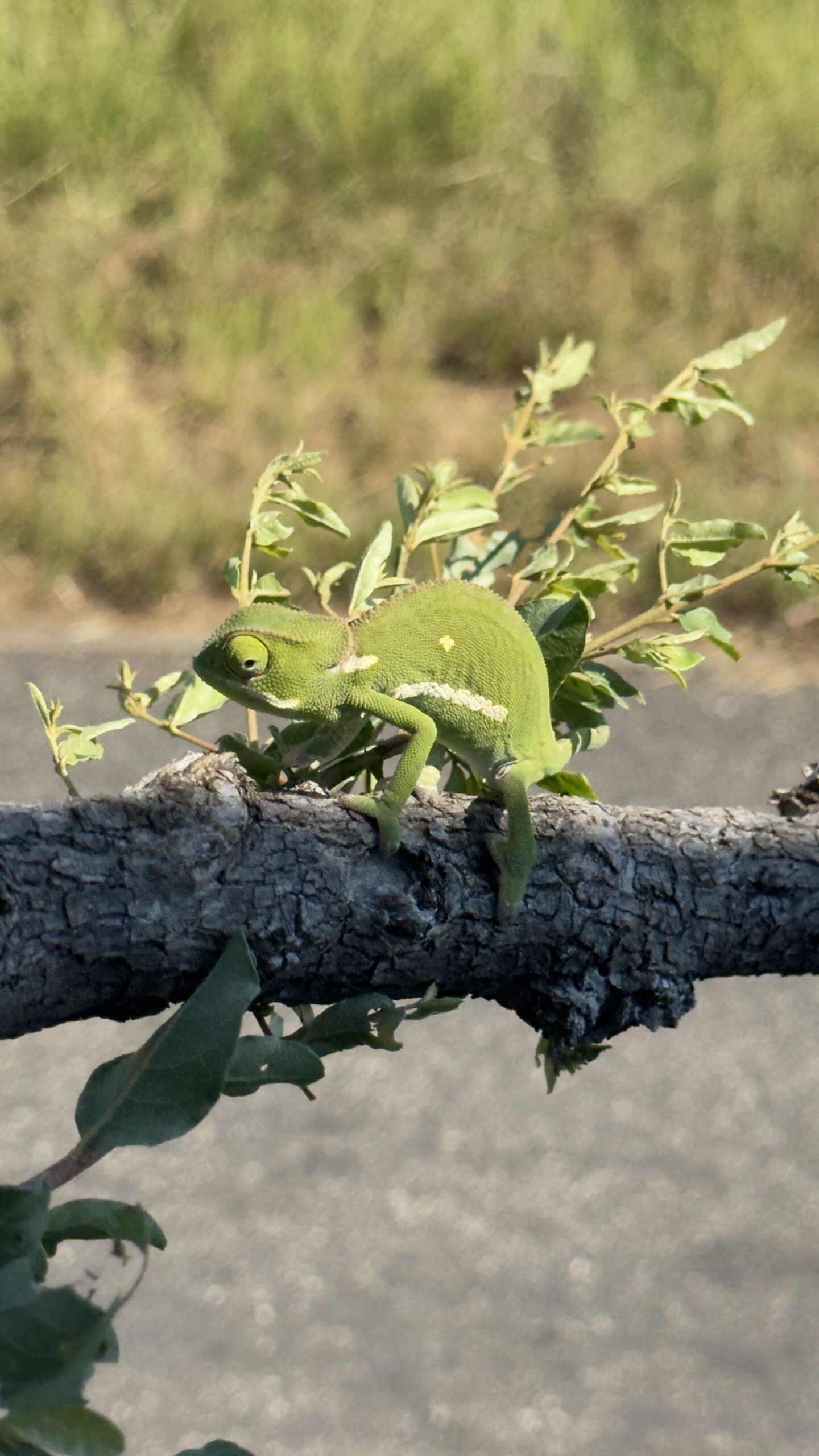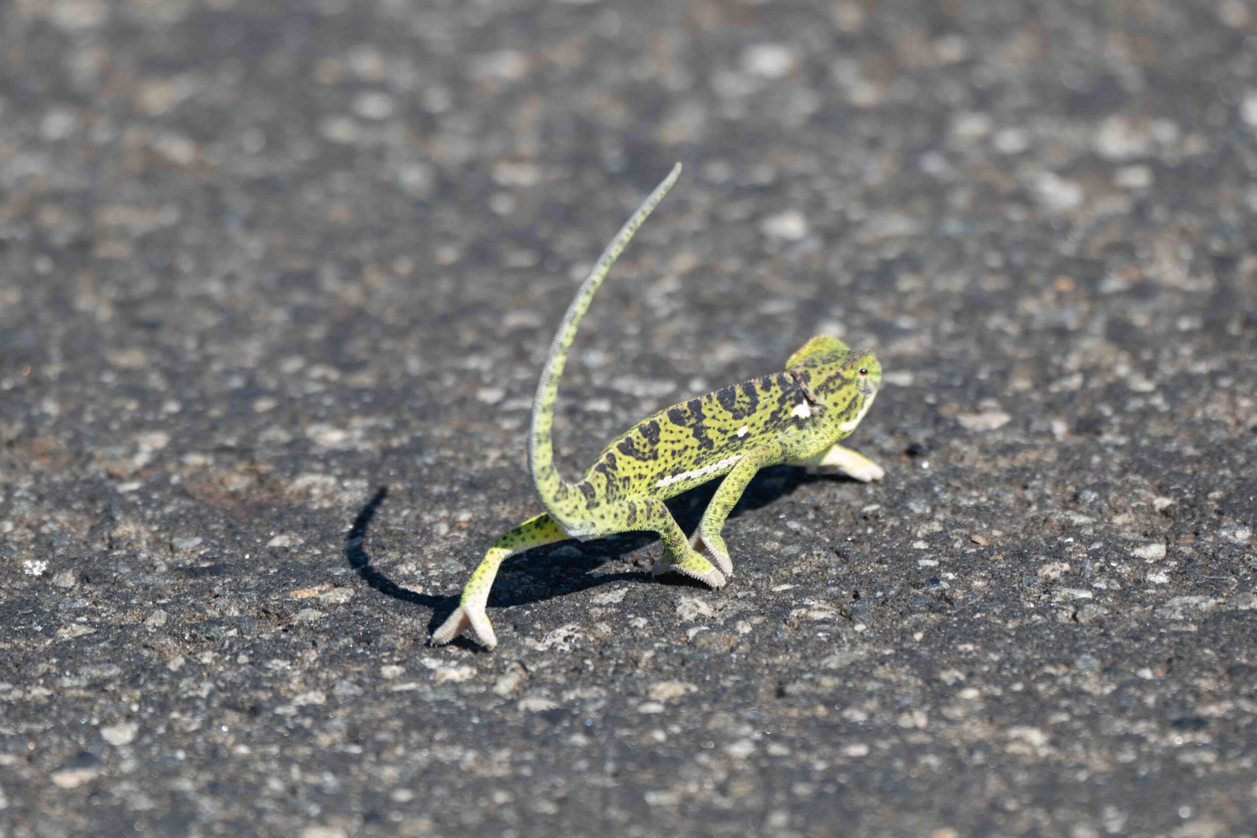 Flap-necked Chameleon crossing the road – slowly!