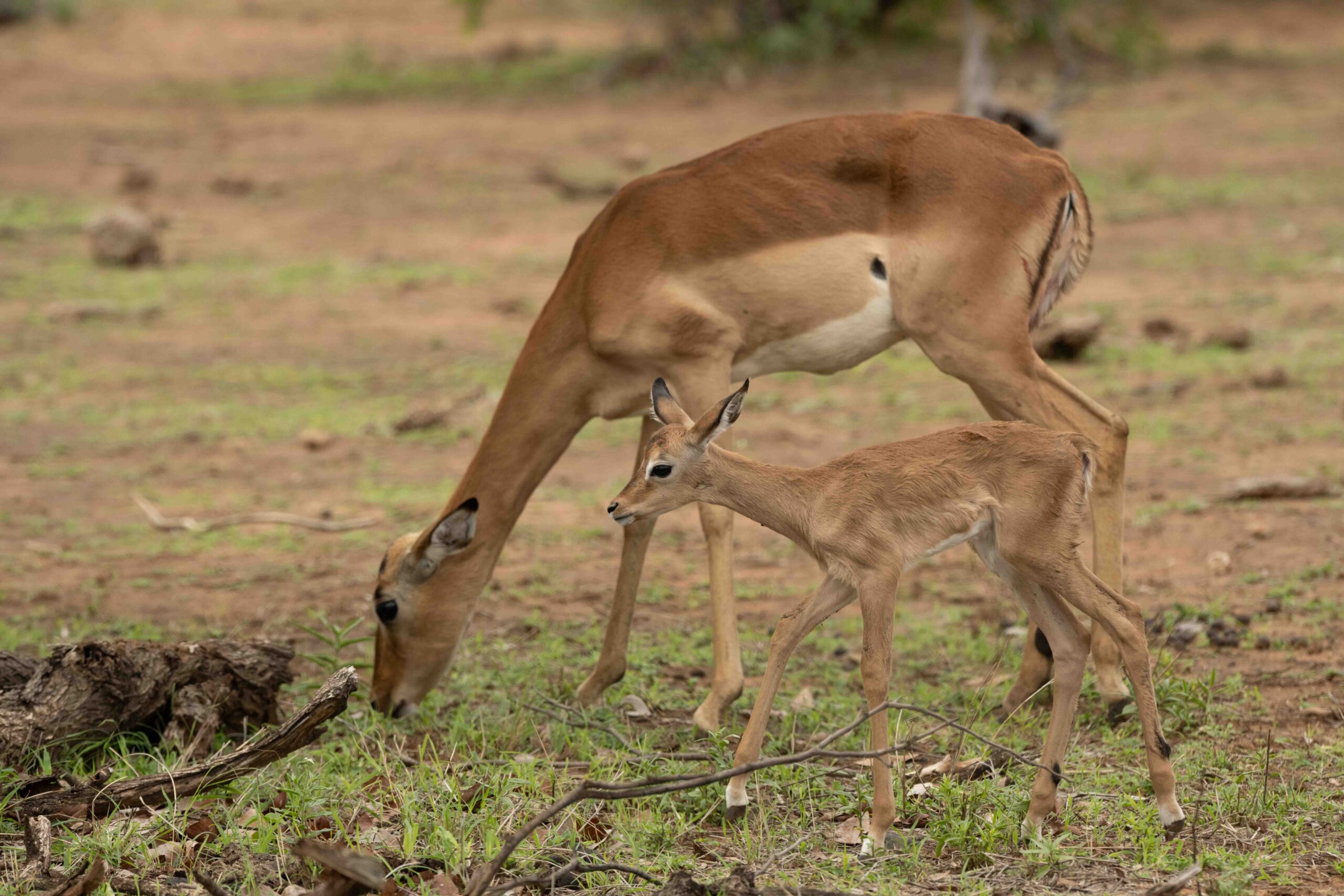Mommy Impala with very new baby – mom still has blood on her from the birth