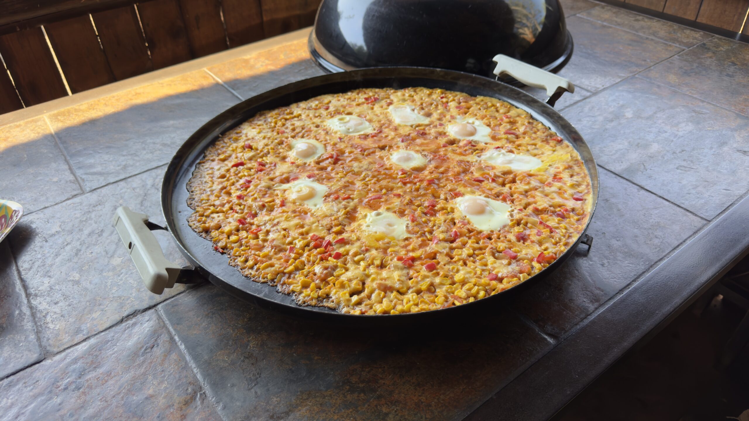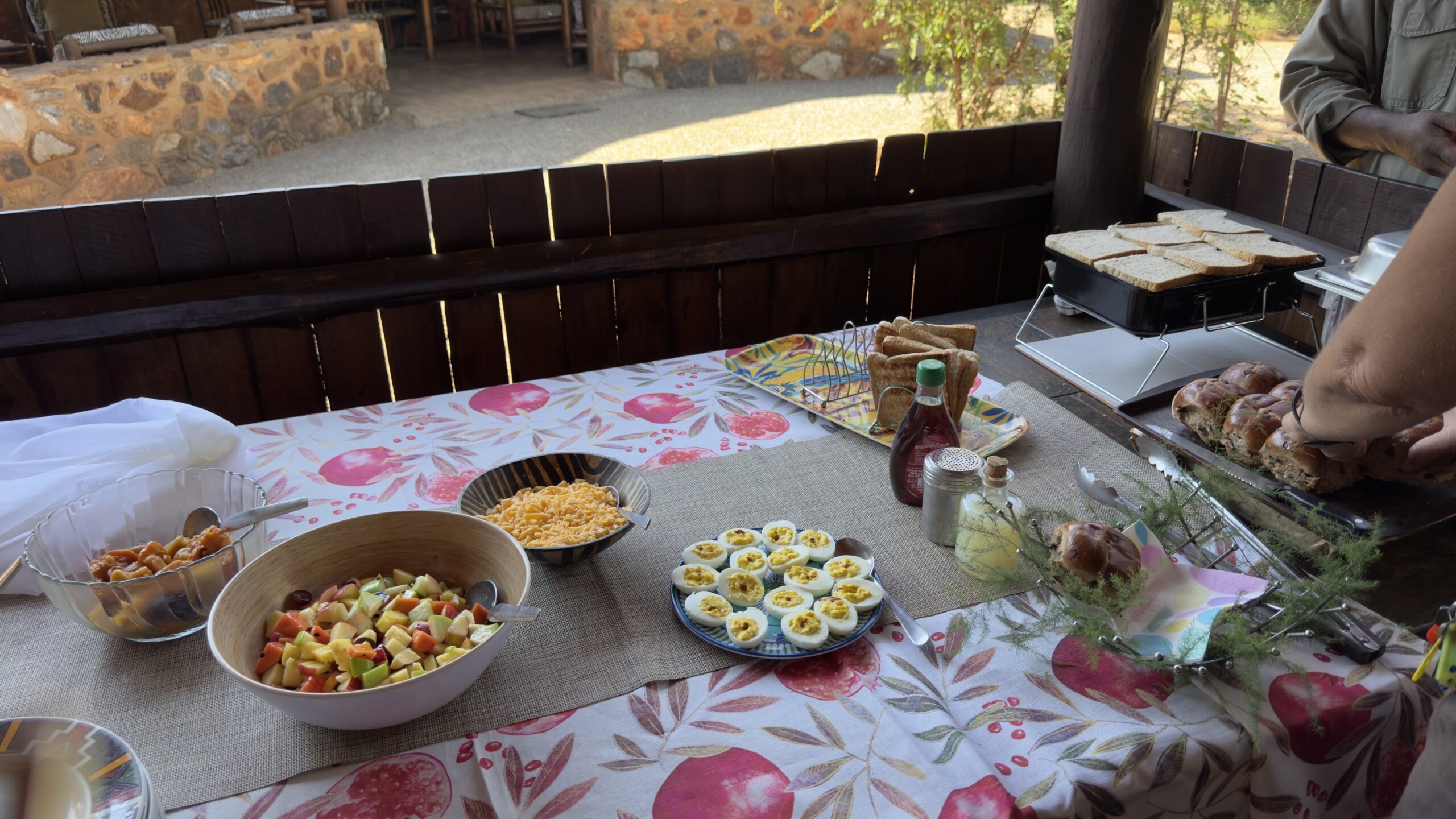 A fine feast of sweetcorn and “fried” eggs. The food at Mosetlha is amazing!
